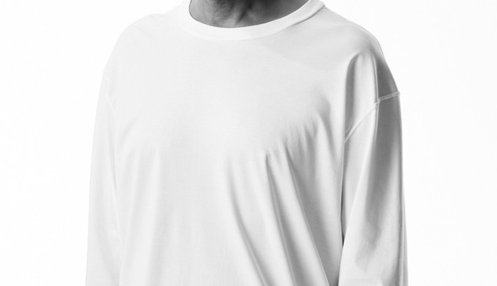 AKM定番の長袖クルーネックTシャツをベースに、サイズ感をビッグシルエットにアレンジしています。