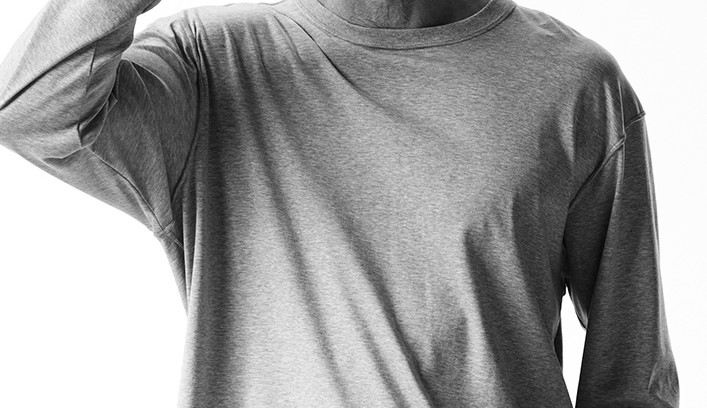 AKM定番の長袖クルーネックTシャツをベースに、サイズ感をビッグシルエットにアレンジしています。
