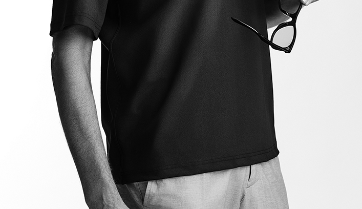快適さと洗練を纏う、機能ジャージーTシャツ。