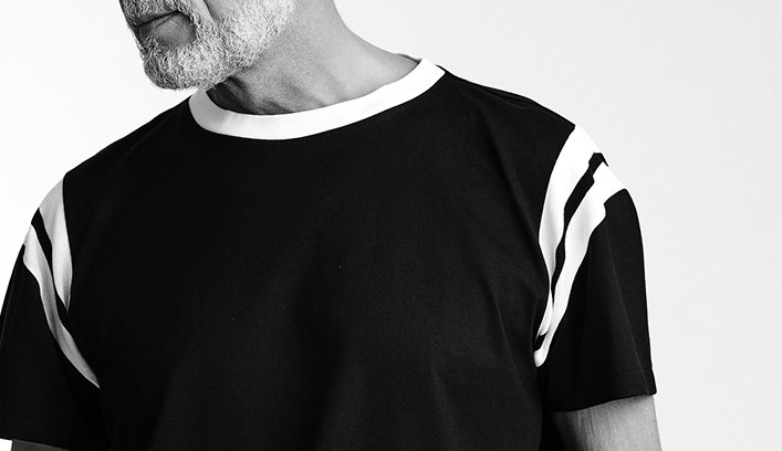 ミニマルなデザインの中にスポーティーなエッセンスを取り入れた、ラインデザインクルーネックTシャツ。