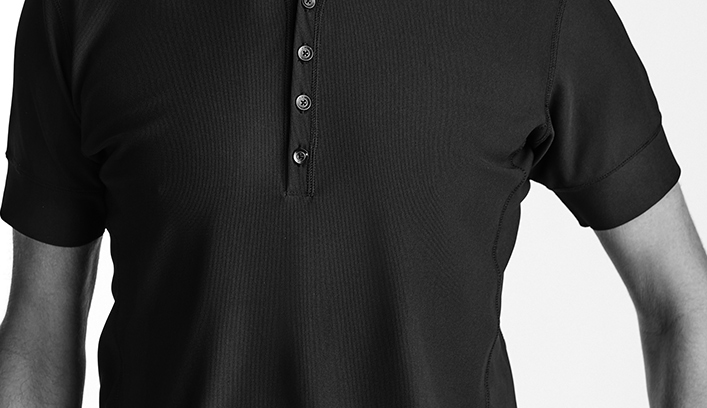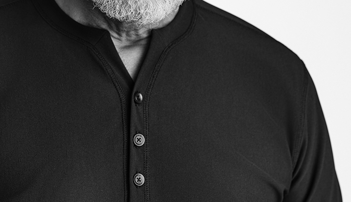 ミニマルなデザインにさりげないアクセントを加えた、ヘンリーネックTシャツ。