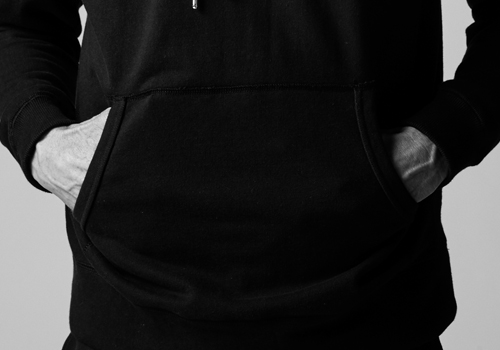 裾は敢えて表地にし、袖口とポケット口のみリブで切替えています。