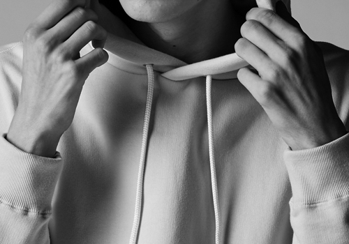 大きめのフード、ドロップショルダー、ボリュームのある身巾、