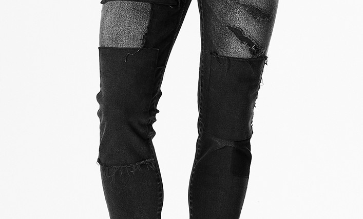 今季はクラッシュ&パッチワーク&リペア加工を施し、ホワイトとブラックはワンウォッシュ+立体ヒゲ、インディゴはハードユーズド加工を施しています。