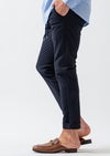 ヒップからワタリに程よくゆとりを持たせたEASYテーパード型に、裾のダブル仕立てが程よい重心を与え、イージーパンツでありながらラフに傾きすぎないバランスへと整えています。