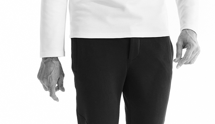 素材の特性や穿き心地を重視し、極力シンプルに仕上げながらも、より立体的で奥行きのある表情を生み出しています。