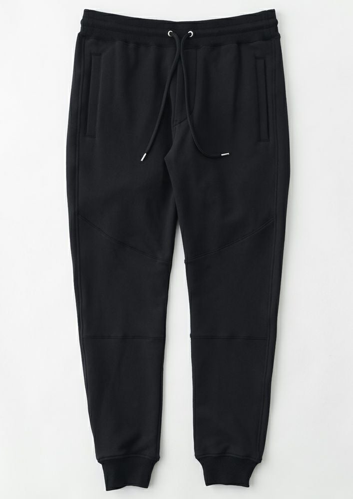 この上ない美シルエットが特徴的な定番 EASY RIB PTにバイカースキニーパンツの膝上の切替デザインを追加した今作。