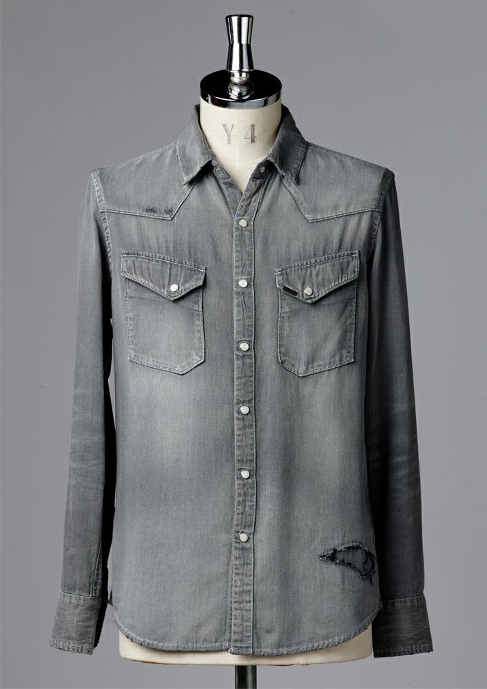 【S117 / DENIM L/S WESTERN COLOR BUTTON -BLACK ICE WASH-】