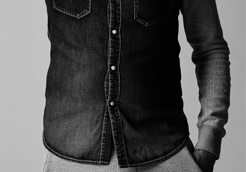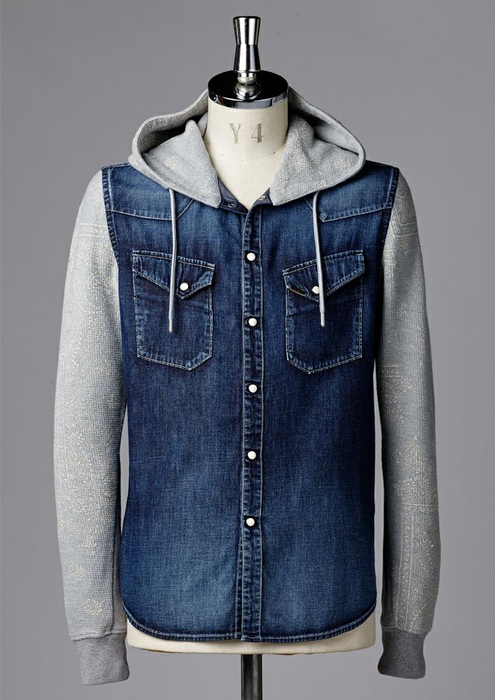 デニムシャツ地とAKMオリジナルからみジャージをコンビ使いし、