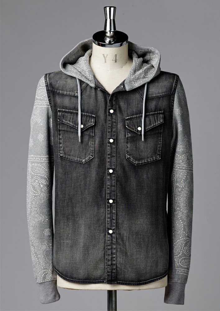 デニムシャツ地とAKMオリジナルからみジャージをコンビ使いし、