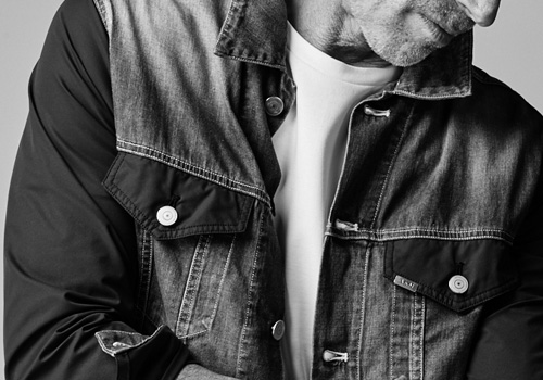 5.5ozの綿100%デニムを身頃に、胸フラップ、袖、裾はストレッチタフタを採用した一風変わった軽量3rd型ブルゾンに仕上げています。デニム部分はリアルなVINTAGEを追求したユーズド加工を施しています。シンプルなAKMロゴクリップが商品を引き締めています。
