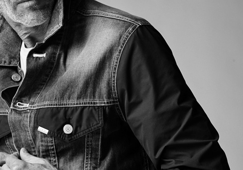染はピュアインディゴで、黒もロープ染色の硫化ブラックです。ミツアヤでフラットな表情ですが、打ち込みがあまり混んでないので、サックリ軽い感じの風合いです。 【袖:プライムフレックス】 性質の異なる2種類のポリマーを貼り合わせた断面を持つバイコンポーネント構造により、 高いストレッチ性と着用快適性を兼ね備えたタフでドライな耐久撥水性のある2WAYストレッチ素材です。