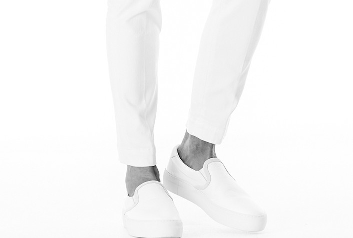 カジュアルの代名詞的なデニム素材をドレッシーなセンタープレス入りスラックスに落とし込みました。