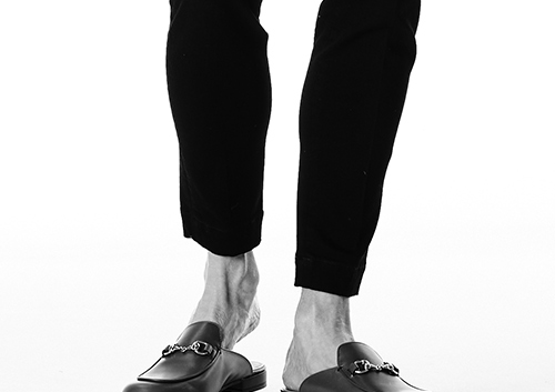 カジュアルの代名詞的なデニム素材をドレッシーなセンタープレス入りスラックスに落とし込みました。
