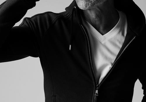 COTTON 95 % POLYURETHANE 5 % AKM別注のストレッチジャージー。 30/20ミニ裏毛において中糸は、すべて伸縮性のある糸をオーガニックコットンでくるんだ CSY 糸に置き換えた素材です。 CSY 糸を使用することで綿100%の裏毛と同じ肌触りを実現しています。 十分に伸縮性を持たせることと生地の厚みを出すために、 生地プレセットせずに横方向の送り込みをしており、また仕上げ時にタンブラー乾燥して 縦および横方向に密な収縮状態をキープしています。