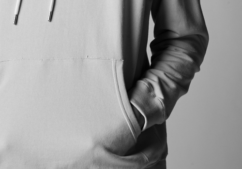 裾は敢えて表地にし、袖口とポケット口のみリブで切替えています。