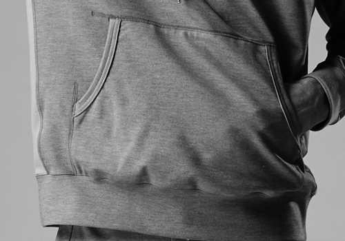 裾は敢えて表地にし、袖口とポケット口のみリブで切替えています。