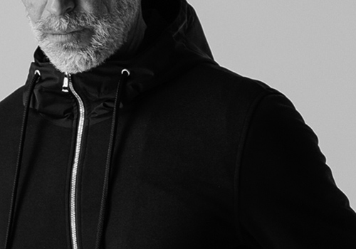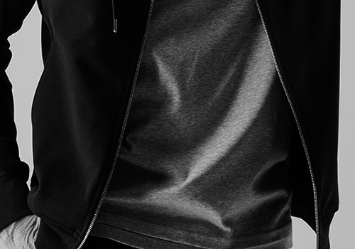 AKMお馴染みのネックZIPパーカー型ブルゾンです。シームを利用したミニマムな腰ポケットと各所のリブ使いが特徴で、フード表のみストレッチタフタを使用することでアクセントにしています。ZIPはAKMオリジナルエクセラを採用し、細部にも抜かりなくスポーティーに仕上げています。