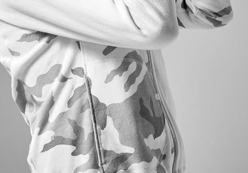 さらに今回から生地でのタンブラー加工を施し、仕上がり後の 縮率の誤差の低下も実現し、風合いもさらにソフト感とふっくら感が増しています。 今回はパイル面を裏に使用して、ふっくらしたパイルの柔らかさを肌面で感じられる仕上がりです。 さらに生地の状態で、顔料プリントにて""AKMオリジナルCAMO柄”をほどこしたものも展開しています。