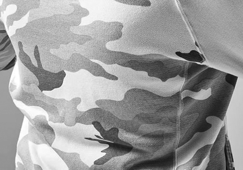 さらに今回から生地でのタンブラー加工を施し、仕上がり後の 縮率の誤差の低下も実現し、風合いもさらにソフト感とふっくら感が増しています。 今回はパイル面を裏に使用して、ふっくらしたパイルの柔らかさを肌面で感じられる仕上がりです。 さらに生地の状態で、顔料プリントにて""AKMオリジナルCAMO柄”をほどこしたものも展開しています。