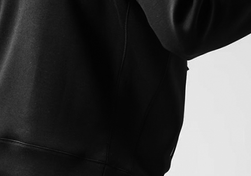 裾も袖口もリブを使用せず、敢えて表地共生地にしミニマルに仕上げています。