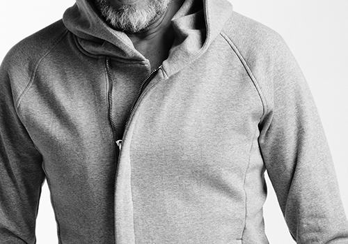 WRAP フード型のショート丈ZIPパーカーです。肩周りは身体に馴染むラグラン袖を採用し、袖口のみリブ使いしています。