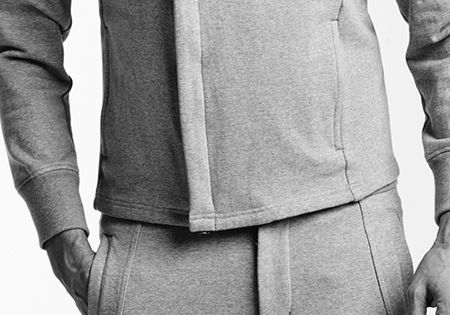 AKM別注の最強ストレッチジャージー。 30/20ミニ裏毛において中糸は、すべて伸縮性のある糸をオーガニックコットンでくるんだ CSY 糸に置き換えた素材です。 CSY 糸を使用することで綿100%の裏毛と同じ肌触りを実現しています。 十分に伸縮性を持たせることと生地の厚みを出すために、生地プレセットせずに横方向の送り込みをしており、また仕上げ時にタンブラー乾燥して 縦および横方向に密な収縮状態をキープしています。それ故にカットソー素材でありながら横だけでなく縦方向にも十分なストレッチ性があります。