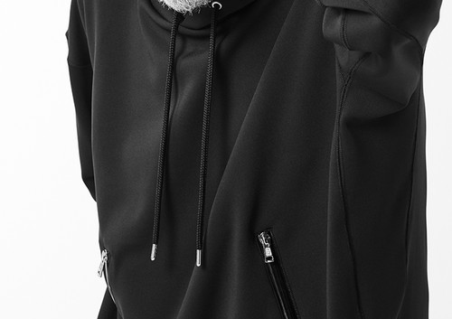 【 B479 / PET141 / AQUA SUITING JERSEY RELAX PULLOVER ZIP POCKET PARKA -BLACK- 】