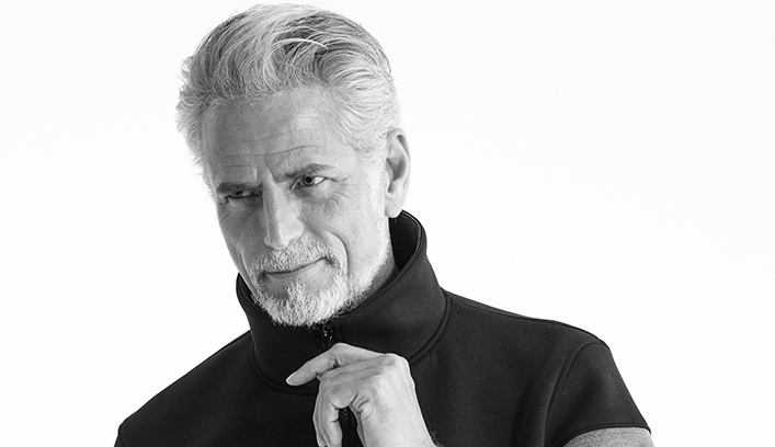 シームを利用した腰ポケットや袖口、裾にリブを使用せず、表地共地にすることでミニマルに仕上げています。