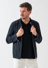 滑らかな風合いと程よいシャリ感を併せ持つ高機能ストレッチナイロンが、ライダースに軽やかさと都会的な洗練を与えます。フロントと袖口にはAKMオリジナルのエクセラZIPを使用し、腰ポケットは切替を活かしたシームポケットでミニマルに構築。