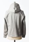 WRAP フード型のショート丈ZIPパーカーです。肩周りは身体に馴染むラグラン袖を採用し、袖口のみリブ使いしています。