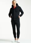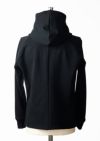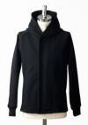 WRAP フード型のショート丈ZIPパーカーです。肩周りは身体に馴染むラグラン袖を採用し、袖口のみリブ使いしています。