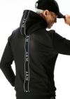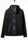 背中とフードにロゴテープを配し、デザインアクセントにしています。