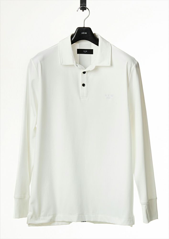 【 AGT006 / PEU009 / 4WAY STRETCH WARM JERSEY BACK TAPE L/S POLO -WHITE 】