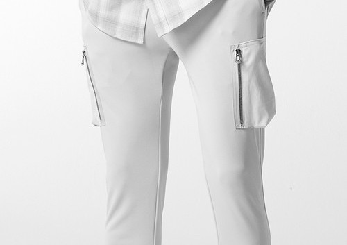 この上ない美シルエットが特徴的な定番 EASY RIB PTにZIPカーゴポケットを追加した今作。