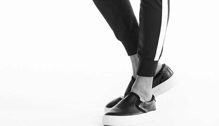 素材の特性や穿き心地を重視し、極力シンプルに仕上げながらも、両サイドのラインをアクセントにしています。