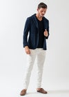 パイル特有のやわらかな表情と、テンセルならではの滑らかな肌触りが、ジャケットでありながら肩の力を抜いて羽織れる軽やかさを生み出します。
