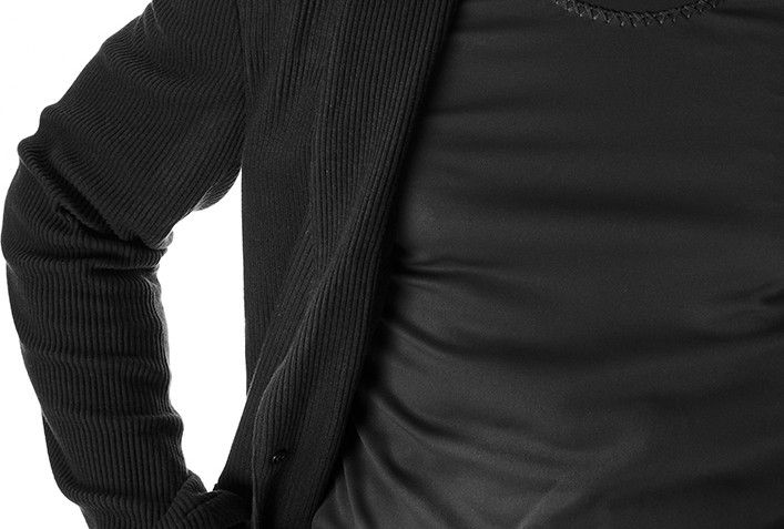発熱効果のあるリブ編み素材を採用し、一枚仕立てで軽量に仕上げながらもウォーム効果がある素材を採用することで、秋冬仕様へと昇華しています。