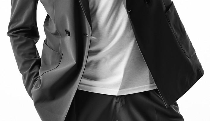 裏地は無しの一枚仕立てで軽量に仕上げ、清涼感溢れる素材を採用することで、春夏仕様へと昇華しています。