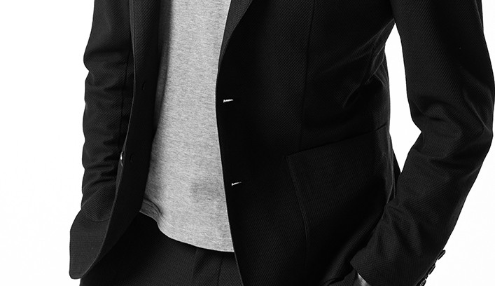 パッチポケットが特徴的なシングルノッチドラペルジャケットとトラウザーは定番のタイトストレート型とEASYテーパード型の2種をご提案します。