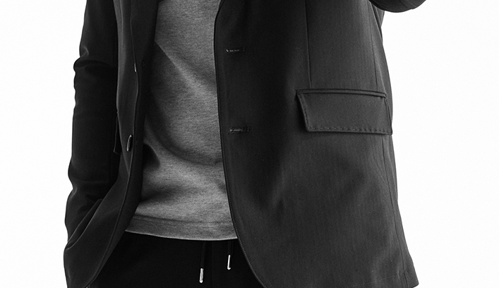 フラップポケットが特徴的なシングルノッチドラペルジャケットは総裏仕立てで身返しはお台場仕様と、より本格スーツのディテールを採用しています。