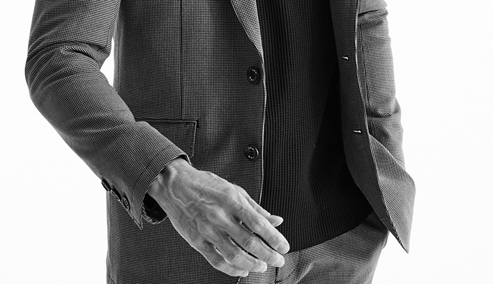 フラップポケットが特徴的なシングルノッチドラペルジャケットは総裏仕立てで身返しはお台場仕様と、より本格スーツのディテールを採用しています。