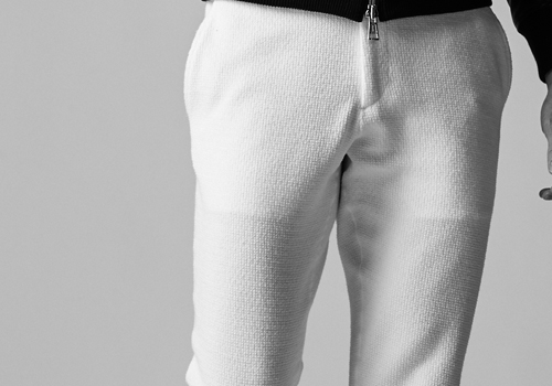 ジャケットとのセットで昨年から登場したこのモデルはイージースラックス型のシルエットを継承し、