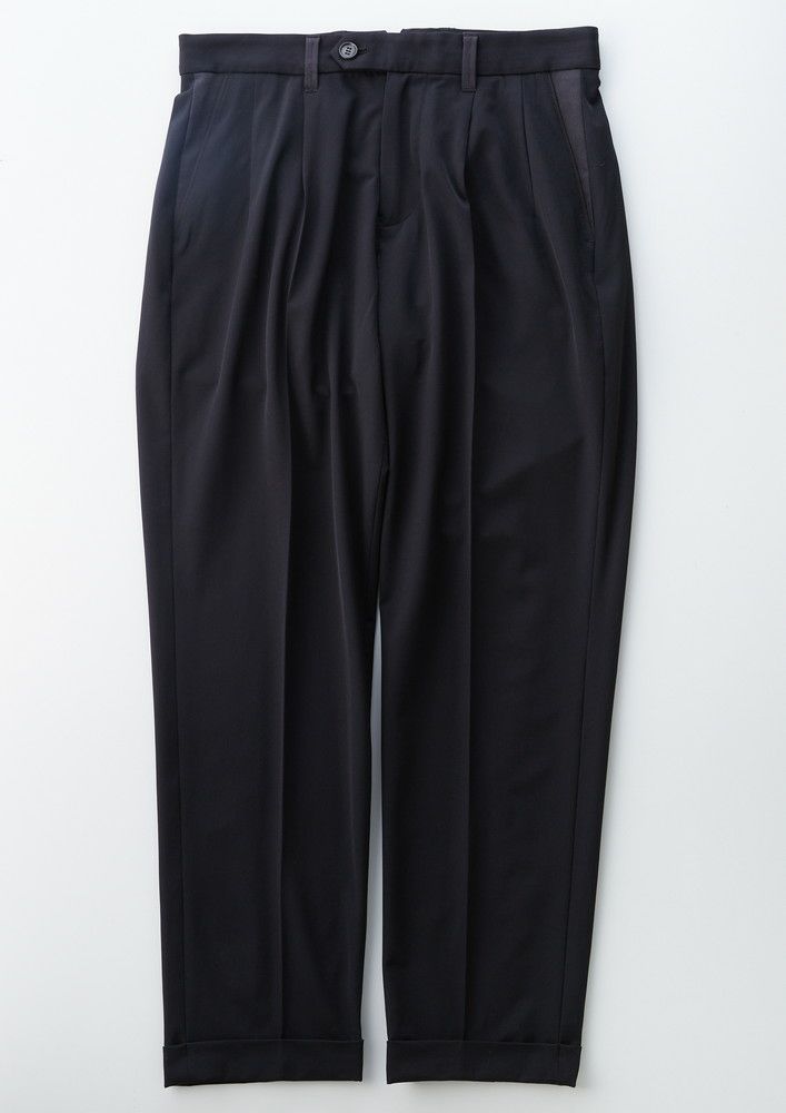 新型のワイドテーパード型のスラックスの登場です。身体のラインがもろに出るスキニーシルエットとは違い、ただ太いだけでもない、野暮ったく見えない適度なワイド感が美シルエットを実現しています。セットアップ使いはもちろん、パンツ単体でもあらゆるシーンに着用頂けます。