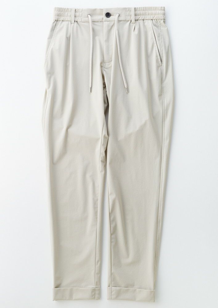クラシックなトラウザーをベースにリラックスイージーパンツにリデザイン。 ヒップからワタリにかけて、ゆとりを持たせ裾にかけてテーパードさせ、リラックス感とシャープさを兼ね備えたシルエットに仕上げています。 金属チップ加工を施した高級感のあるスピンドルをウエストに採用しています。