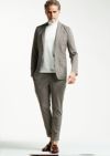 厳選した各表地はストレッチ性に富んでおり快適な着用感を保証します。釦は AKM 定番の本水牛六穴釦です。今期はパンツの裾をダブル仕上げにてご提案します。