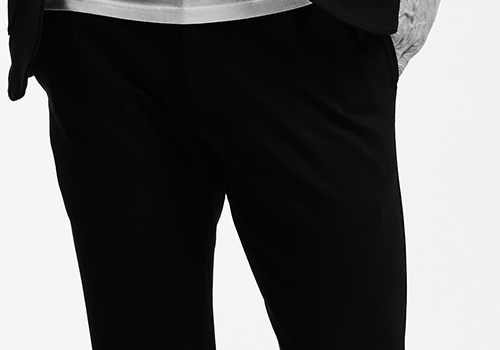 AKM定番のSWING EASY SET-UP。パッチポケットが特徴的なシングルノッチドラペルジャケットと定番のEASYテーパードスラックスです。過去にLEON誌タイアップにて発表したモデル同様、発熱効果のあるポンチ素材を採用し、一枚仕立てで軽量に仕上げながらもウォーム効果がある素材を採用することで、秋冬仕様へと昇華しています。ストレッチ性にも富んでいるので快適な着用感を保証します。釦は AKM 定番の本水牛六穴釦です。今期はパンツの裾をダブル仕上げにてご提案します。