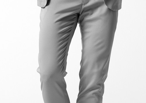 釦は AKM 定番の本水牛六穴釦です。今期はパンツの裾をダブル仕上げにてご提案します。