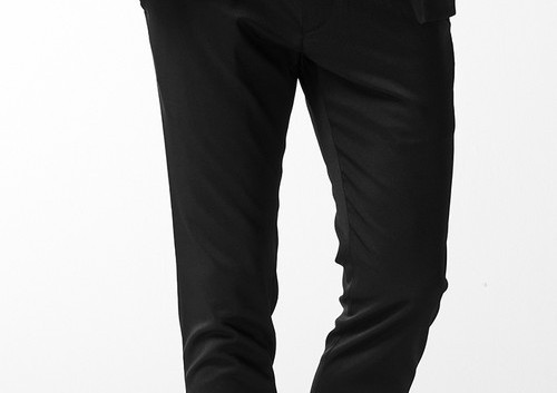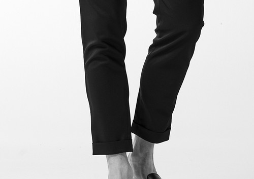 釦は AKM 定番の本水牛六穴釦です。今期はパンツの裾をダブル仕上げにてご提案します。