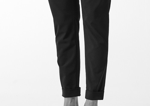 トレッチ性にも富んでいるので快適な着用感を保証します。釦は AKM 定番の本水牛六穴釦です。今期はパンツの裾をダブル仕上げにてご提案します。